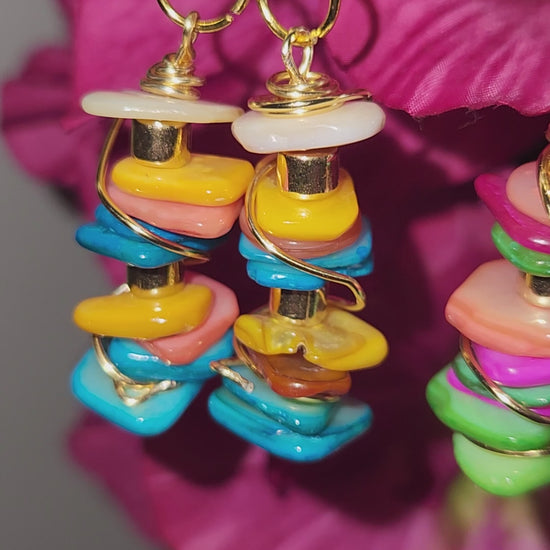 These colorful shell bead earrings bring a stylish, natural flair to your look. Lightweight and comfortable, they brighten any outfit with vibrant tones, making them a perfect accessory to boost your confidence and express your unique style every day.